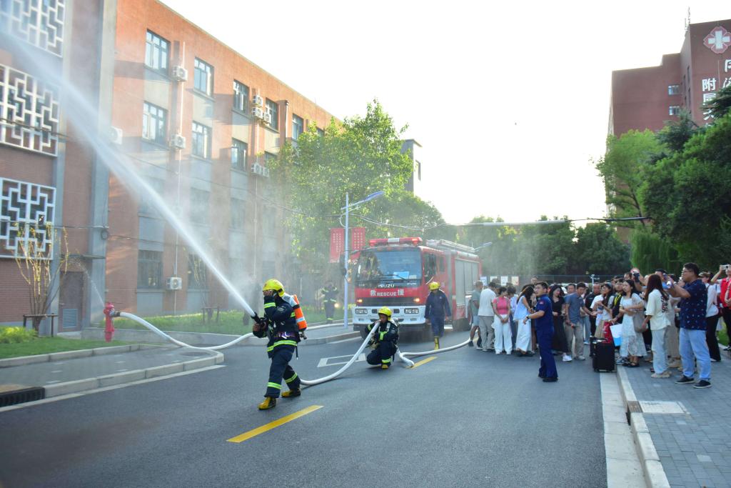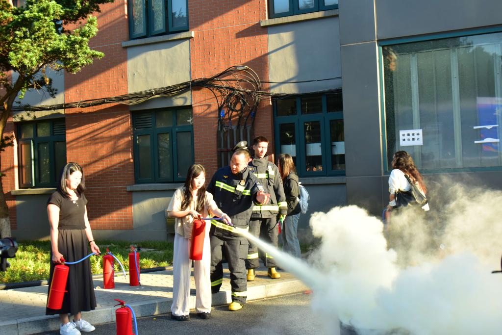 最初,由上海市普陀区消防救援局黄辰博教官进行现场实操练习训练。正在救火员的指点下,学生们顺次旁不雅并体验了高空缓降逃生、烟气逃生模仿、消防救援灭火(灭火器、消防栓)等项目,切实提高了师生的防灾及突发事务应急处置能力。