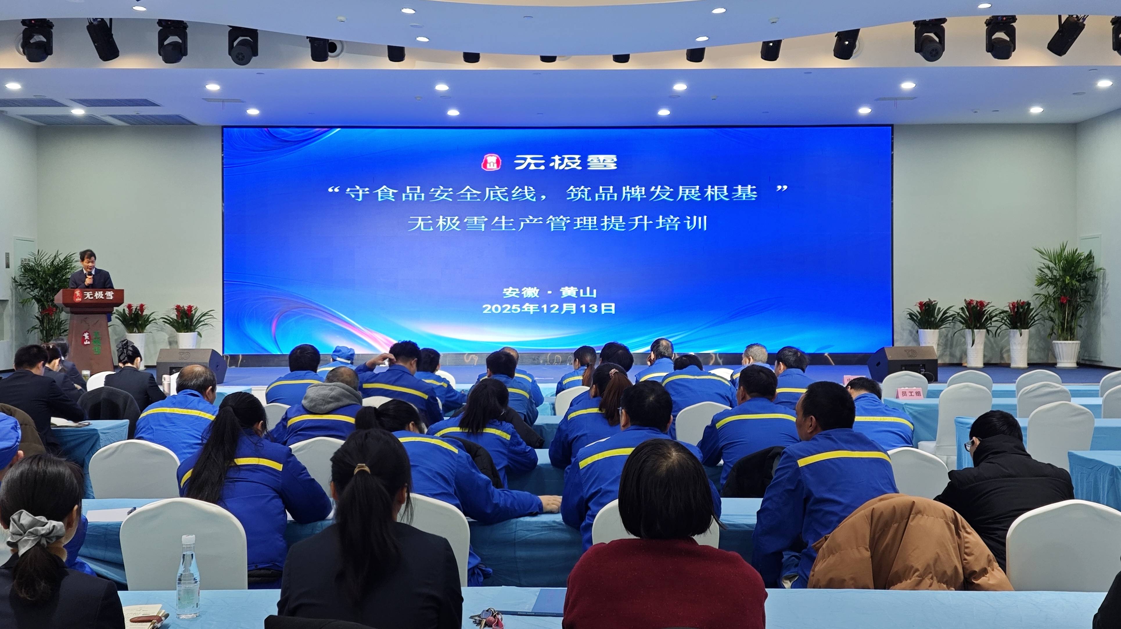 为进一步强化出产办理系统,建牢食物平安防地,夯实企业可持续成长根底。12月13日,黄山无极雪举办了以“守食物平安底线,建品牌成长根底”为从题的出产办理提拔培训。特邀合肥职业手艺学院传授。